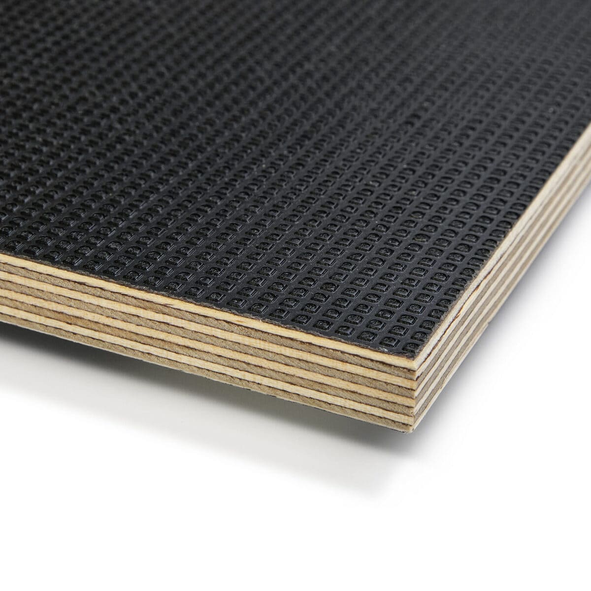Tablero contrachapado 100% de madera de abedul, recubierto con una superficie antideslizante de papel con resina fenólica, en una o ambas caras.