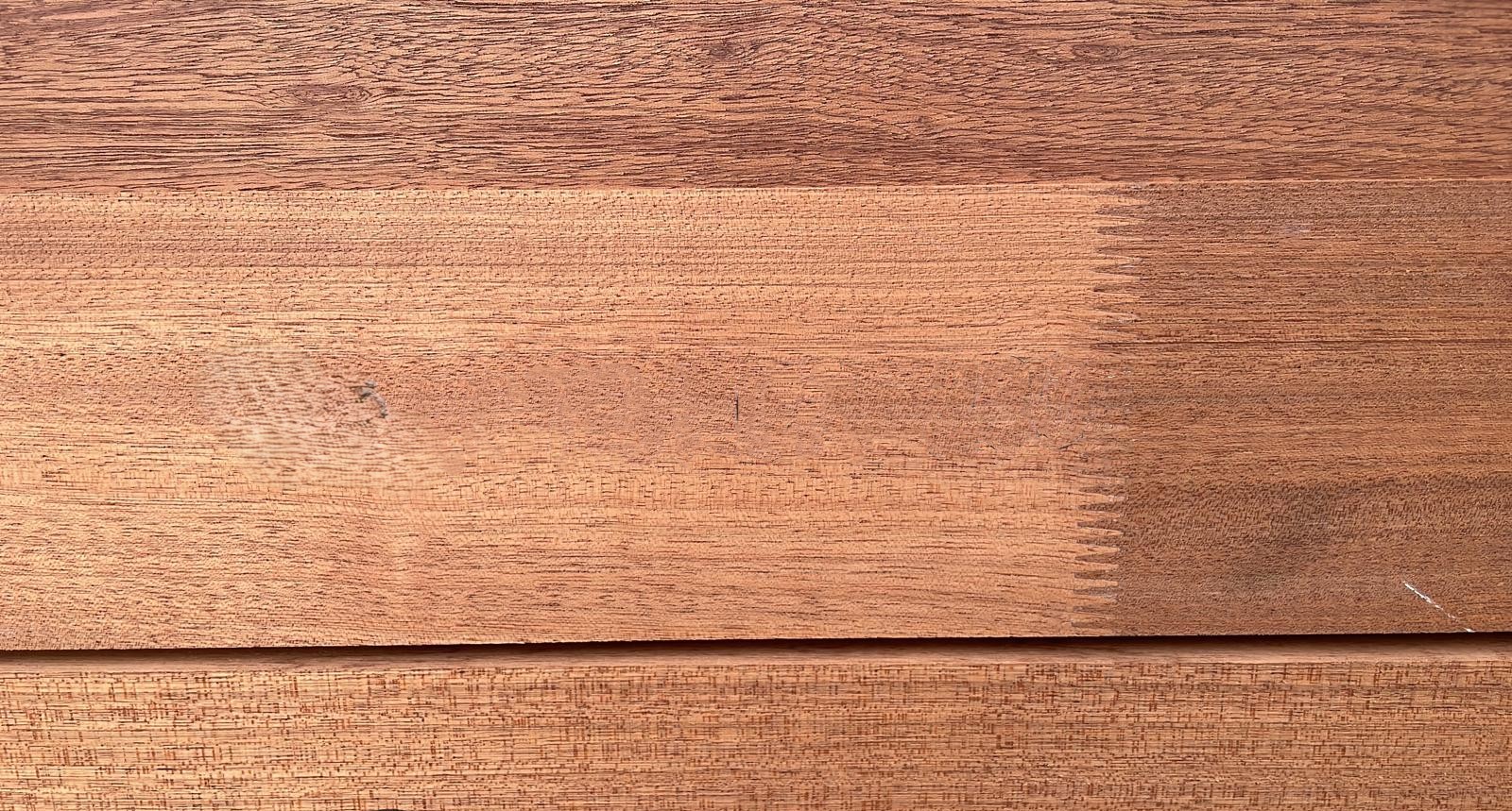 Se trata de un laminado de madera de Sipo KKK, fabricado mediante la unión de piezas con finger joint en la cara, lo que permite obtener secciones homogéneas, estables y adecuadas para procesos industriales de mecanizado.